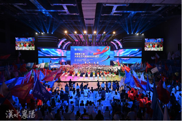 青春的海洋,艺术的盛会。6月12日,由教育部和湖北省人民政府共同主办,湖北省教育厅和襄阳市人民政府共同承办的全国第七届大学生艺术展演活动开幕式在华中农业大学襄阳书院体育馆隆重举行。来自全国31个省(区、市)、新疆生产建设兵团和香港特别行政区、澳门特别行政区282个项目7400余名师生齐聚襄阳,用激情谱写新时代高校美育的华彩乐章。我校大学生艺术团30余名师生参加了开幕式演出,展现了西院师生奋发有为的青春风采。