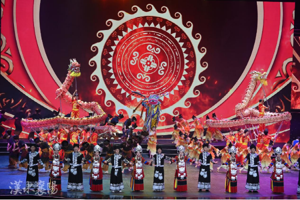在《家国情怀》篇章,我校学生与湖南第一师范学院、澳门城市大学等高校的学生们,带着非遗项目“龙凤灯舞”欢快登场,用歌唱、舞蹈、特色非遗表演的形式,勾画出了神州大地民族团结、和美安康的魅力图画。香港、澳门的大学生和内地大学生共唱《灯火里的中国》,将整场演出气氛推向了高潮。