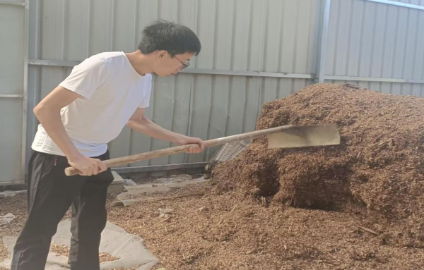 在进一步的学习中,实践团成员注意到菌渣是食用菌生产过程中产生的重要副产品,富含有机质和养分,可以作为农作物的有机肥料。团队通过充分利用这些资源,将菌渣铺在宽敞的场地上,利用自然的阳光和风力进行晾晒。晾晒使菌渣变得干燥且杂质少,方便后续的储存和处理。团队还注意到,晾晒过程需要不断翻动和搅拌菌渣,以保证其均匀受热,防止发生霉变和变质。