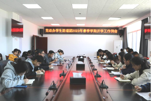 |   为推进助理团新学期各项工作顺利开展,焕发“新学期,新气象”,3月3日,党政办第十一届学生助理团在至正楼一楼会议室召开“2023年春季学期开学工作例会”。党政办王力尉、刘军华、王少先三位老师及学生助理团全体成员参会,会议由助理团副团长何婷主持。      会议开始,助理团团长彭希就上学期助理团工作作总结,针对工作中存在交流合作少的问题,她希望为提高工作效率,保障工作质量,各部门、执委与干事之间要多加强交流与合作。      紧接着,各部门执委对本部门内部工作作工作汇报:一是总结上学期工作中存在的问题,并作出可行性改进建议;二是对本部门本学期的工作作进一步梳理与安排。      文秘部        对外部                       综合部        信网部                      机要部   会上,王力尉老师以“感谢与希望”为主题进行交流。一是感谢助理们在过去一学期的辛勤付出;二是希望助理们坚持以激情、饱满的态度迎接新学期的工作与学习;三是要以学业为主,注重个人发展,不断拓宽自身知识面。      刘军华老师对助理团工作提出三点意见:一是要有严谨的工作态度,助理工作应做到条理清晰,注重细节;二是学会适应新环境,勇敢挑战新困难,善于总结经验;三是学会苦中作乐,从枯燥的工作中得到锻炼、找到乐趣。        最后,王少先老师进行工作总结并作安排:一是进一步提升会务管理、会议礼仪等会议服务能力;二是进一步丰富助理团课外活动;三是进一步完善助理团工作动态、日常风采等网站建设;四是进一步加强对有困难学生助理的关注关心关爱与帮扶;五是加强学习,协调做好工作与学习之间的时间规划。   图文/第十一届学生助理团   排版/欧阳范   核稿/王力尉  王少先 |