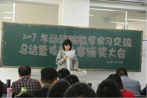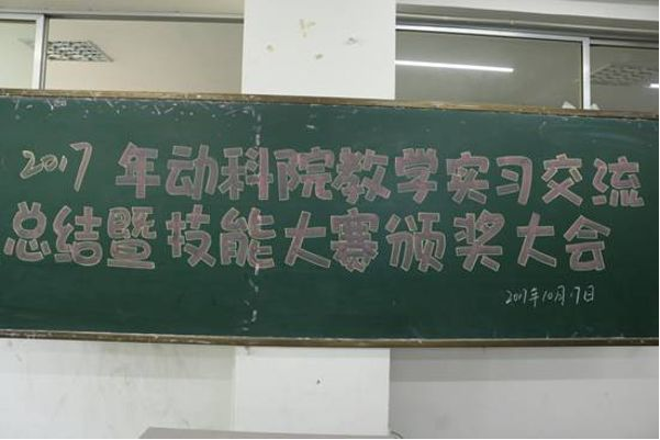 为鼓励在教学实习和第八届技能大赛中表现突出的优秀个人以及增强同学们对培养理论与实践相结合的能力的重视、提高学习兴趣,动物科学学院于2017年10月17日下午13点在7301召开了“2017年动科院教学实习交流总结暨技能大赛颁奖大会”。