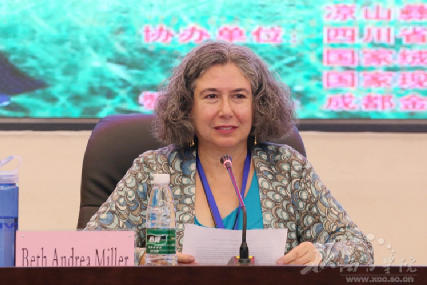 国际山羊学会主席Beth Andrea Miller女士致辞,她对凉山优美的自然风光表达了赞美之意,表示大家需要共同交流学习,并预祝大会圆满成功。