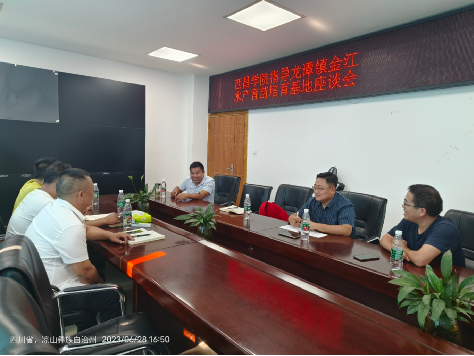 现场考察结束后,调研组又来到镇政府办公楼进行了交流和座谈。调研组认为:金江镇地处金沙江边,干热河谷气候优势明显,水温水质适宜,非常适合养蛙。沿江高速明年年底通车,再加乐西高速通车后,交通方便。上下有水电站,有望能解决牛蛙冬眠问题以实现错季上市。通过错季孵化、稻蛙共养、鱼塘净水等模式可以支撑牛蛙基地建设。基地附近有一处闲置的校舍,部分房屋可改造为专家住宅楼、教室具备改造为实验室的条件,公司后期可以申请使用该校建立专家小院和实习基地。同时,布拖县、龙潭镇党委政府均大力支持,项目落地很有前景。森野公司法人、总经理喻定林表示公司具备快速设计和施工能力,该项目有望10月底完成施工,年底投放首批牛蛙。