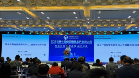 二是营养饲料与绿色投入品开发。中国海洋大学艾庆辉教授分享海水仔稚鱼人工微颗粒饲料新突破;张宏福教授提出昆虫蛋白替代鱼粉方案;乔建军教授展望微生物合成生物学定制功能性饲料。企业展示的饲料发酵工艺、鱼粉减量替代等技术为产业降本增效提供了较好的参考。