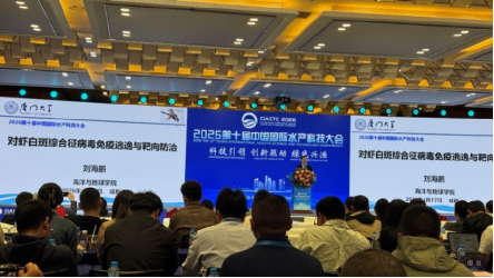 三是病害防控技术。厦门大学刘海鹏教授深入解析了对虾白斑综合征病毒的免疫逃逸机制,为靶向防治提供了理论依据。福建农林大学陈新华教授围绕大黄鱼疫病免疫基础与防控技术作了专题报告。企业分享的噬菌体技术等生物防治方案,展示了“减抗替抗”背景下病害防控向精准化、生态化转型的趋势。