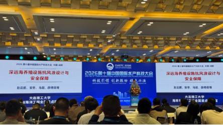 四是设施装备与智慧渔业。大连理工大学赵云鹏教授对深远海养殖设施的抗风浪设计进行了核心技术剖析。多家企业展示了“温氧增效、节能减碳、健康生态养殖”等方面的先进装备与实践方案。