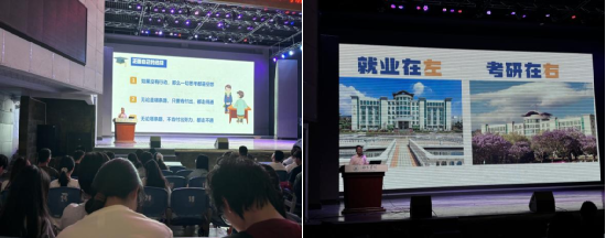 副院长黄增文作“规划未来 扬帆起航”毕业生生涯指导专题培训。引导同学们正确看待考研和就业;通过介绍就业和考研成功案例激励毕业生;指导大家撰写好简历、求职书,为大家提供参考模板。还就毕业生可能出现的心理问题进行讲解和疏导。