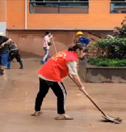 2023年7月27日,四川省泸州市古蔺县遭遇了十几年来最大的一场洪灾,古蔺城内、周围的村庄大部分过水受淹。灾难无情人有情,洪灾发生后,党和政府以及社会各界第一时间对受灾区域倾力救援,当地群众也积极参与抗洪救灾,我院2022级动物科学1班学生袁宗秀毅然第一时间参与到抗洪救灾中。众人拾柴火焰高,大家你一铲我一铲,你帮我、我助你,齐心协力抗洪保家乡。