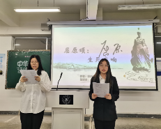 首先进行的是经典诵读比赛。选手们台风自然大方,出入有序有礼,精神饱满,衣着得体。随着背景音乐的响起,参赛选手们也开始朗诵起来。第一组带来的《甲骨文》朗诵,语言生动,饱含情感,表达着对祖国深切的热爱;接下来选手朗诵的《蜀道难》,她们仿佛朗诵出了蜀道的巍峨,高耸;《将进酒》让我们感受到了李白的豪迈、爽朗;最后一组的《岳阳楼记》让我们仿佛身临其境,感受诗人诗文的美好。传承经典花正开,腹有诗书气如海。同学们声情并茂的诵读,时而婉转深情,时而慷慨激昂,时而细语轻诉,时而铿锵有力……