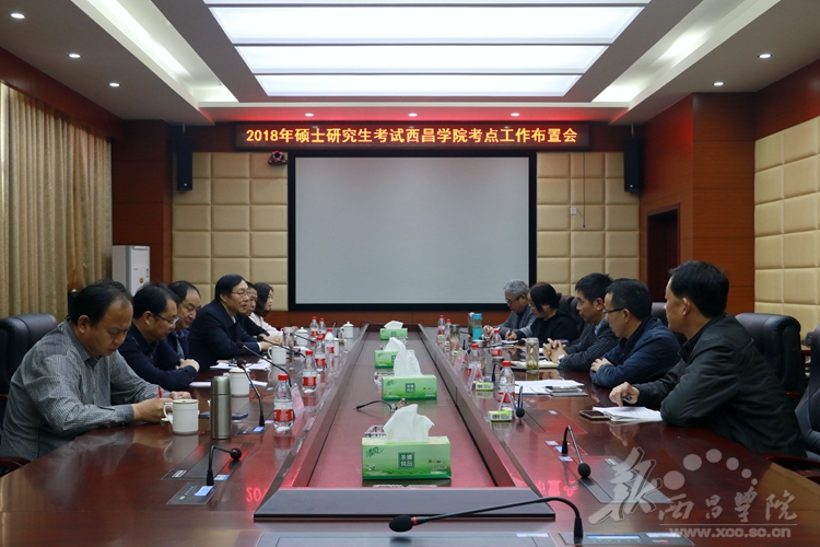 11月15日,我校于北校区综合实训楼一楼会议室召开2018年硕士研究生考试西昌学院考点工作布置会。凉山州副州长肖春,副秘书长杨德瑞,州教育局、州公安局、州招办、州保密局负责人,我校党委副书记、院长彭正松,副院长陈小虎,党政办主任沈良杰,教务处处长胡青龙,纪委副书记彭世逞,保卫处副处长郑璐参加了会议。