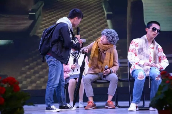 紧接着是红十字志愿者协会带来幽默风趣的小品《列车奇遇》,同学们看到在列车上因为座位做错带来的一系列故事,个个笑得前仰