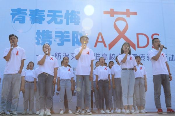启动仪式尾声,志愿者们演唱歌曲《青春无悔》,伴着优美的旋律,细细品味着歌词带给我们的缕缕温情,就像歌词“青春途中成长的风景,雨过天晴彩虹的足迹,温暖就是你和我在一起,手挽着手,心连着心,拥抱真情”用温暖、阳光、积极的曲风感染着在场的每一个人,相信这份真挚一定也会激励更多人参与防艾宣传队伍中。