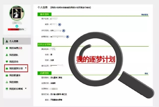 Step1:登录成功进入 个人中心 ,可以看到【我的逐梦计划】菜单▼。