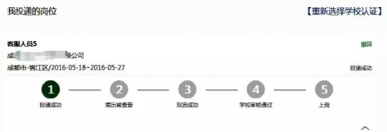 投递岗位后,等待用人单位在 五天之内 进行双选。学生投递的三个岗位只能有一个被用人单位选中,其余两个将默认拒绝。如果三个岗位都没有被选中,学生可以重新开始投递简历。