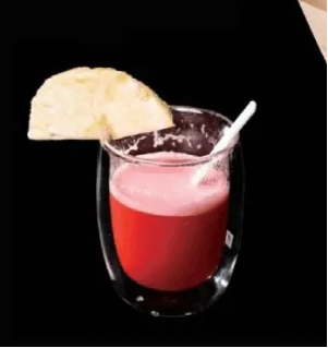 2将1~3颗的草莓去蒂(其他水果也可),加入100毫升水和一勺食盐,将草莓仔细碾碎、搅拌至没有明显的果肉颗粒(这里可以借助搅拌工具哦)。