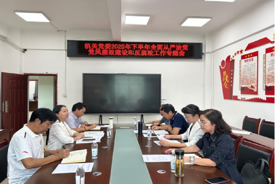 10月17日上午,机关党委在至正楼五楼党员活动室召开2025年下半年全面从严治党党风廉政建设和反腐败工作专题会议。会议由机关党委书记马庆霜同志主持,机关党委委员、纪委委员参加会议。