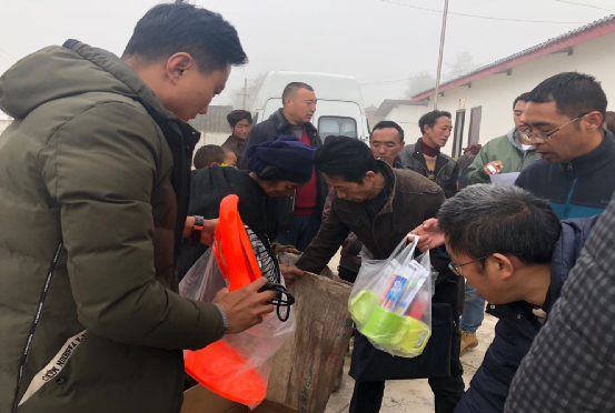 经济管理学院一行人到达延务村后,按照事先制定的方案开展工作,为结对帮扶的16户农户家庭发放了米、油、取暖器、电热水壶、床上用品、牙膏牙刷等生活用品用具。