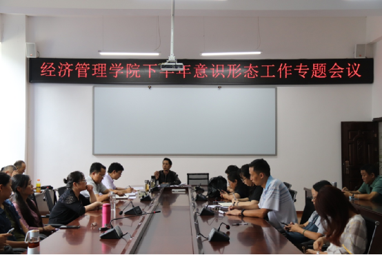 为牢牢掌握意识形态工作领导权,贯彻落实意识形态工作责任制,向教职工并通过他们向广大学生传递更多的正能量,2020年9月8日,经济管理学院在8109会议室召开了意识形态工作专题会议。会议由经济管理学院党委书记肖立新同志主持,学院全体教职工参加了会议。