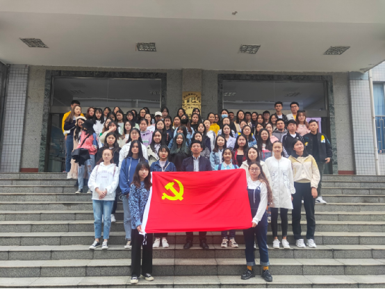 党课结束后,汪腾同志与84名党员、预备党员和积极分子在经管院大门口合影留念。