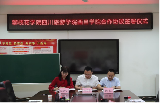 西昌学院经济管理学院、攀枝花学院经济与管理学院、四川旅游学院经济管理学院领导表示,将以合作协议的签署为新起点,在学科专业建设与人才培养、产教融合、师资交流与合作等方面携手共进、合力突破,推动新文科背景下应用型本科高校内涵式发展,促进产教融合办学经验交流借鉴,深入推进三校院际合作,提高经管类应用型人才培养质量,更好服务和支撑区域经济社会高质量发展.