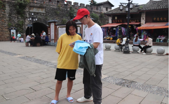 图为队员们为会理古城的群众宣传党团方面的知识,进行答题换物活动
