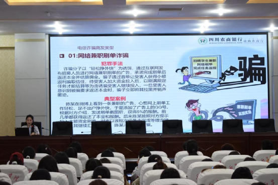 为深入贯彻教育部“平安校园”建设部署要求,切实筑牢2025级新生校园安全防线,提升新生对电信网络诈骗的识别与防范能力,9月19日,经济管理学院特邀凉山农商银行反洗钱检测中心资深讲师袁艺,在至真楼国际学术报告厅开展“防范电信诈骗 呵护你我他——新生防电信诈骗安全教育”专题讲座。学院2025级全体新生到场聆听。