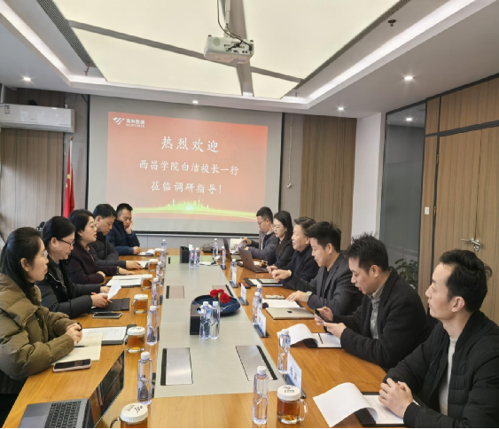 为深入贯彻落实教育部“优企引才”定向访企拓岗促就业专项行动部署,深化产教融合、校企合作,推动人才培养与产业需求精准对接,2026年1月27日,西昌学院党委副书记、院长白洁率经济管理学院调研团队赴陕西美林数据技术股份有限公司开展“访企拓岗”专项调研。党委常委、组织部部长、经济管理学院党委书记李思,经济管理学院党委副书记、院长陆铭宁,副院长马小丽,实验室副主任周海力及博士代表刘翔宇随同调研。美林数据董事长王璐、副总裁肖西伟、首席顾问靳学昕等企业高管热情接待并陪同交流。双方围绕数字经济时代下的人才共育、平台共建、科研协同等内容展开深度对话,共同谋划校企合作新路径,为服务区域产业发展注入新动能。
