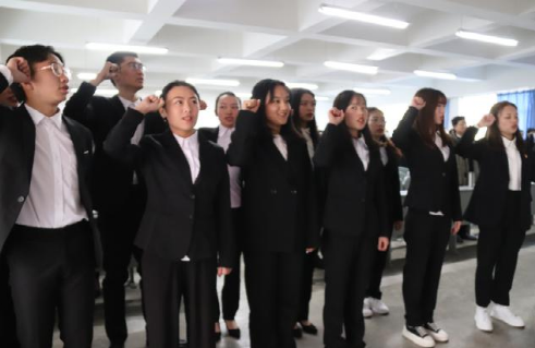 大会第五项议程:全体起立,面向党旗,全体党员宣誓。