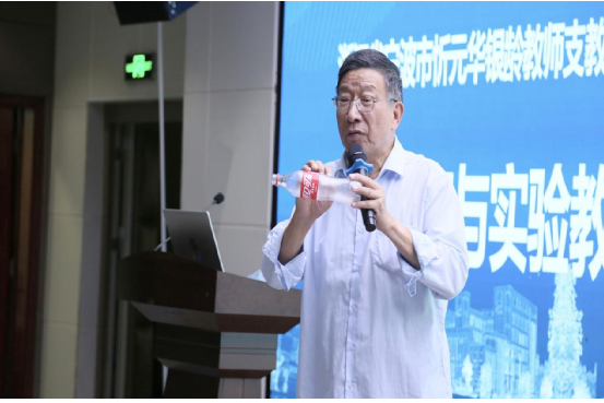 忻元华银龄教师支教团队响应教育均衡政策号召,定制以“学科教学方法”“育人经验分享”为主题的讲座。忻老师以小学科学适配课程的实验为载体,拆解了“如何设计实验导入、如何通过实验提问启发思考”等教学逻辑,并现场演示了“火箭发射”“酒精-空气混合爆炸反应”等实验。让学生直观掌握“以实验为工具”的小学课堂教学方法。