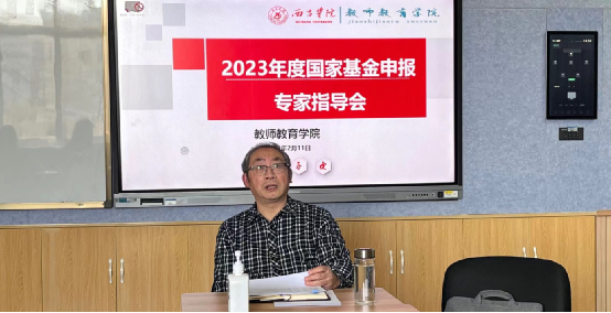 2023年2月11日下午3点,在北校区致知楼207召开了教师教育学院2023年度国家社科基金项目申报指导会,四川师范大学四川文化教育高等研究院院长杜学元教授、教师教育学院党委书记陈家才教授、院长姜廷志教授、副院长黄远春教授及其他2023年度项目拟申报老师参会,会议由姜廷志主持。