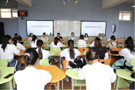 根据院领导“同心共筑促发展”的工作要求,为了深入加强各科室间以及与团学组织的交流沟通,2023年4月20日中午在致知楼207教室召开了教师教育学院科室工作交流会。本次会议由办公室主任刘有为主持,教务科副科长李俊佐、实验实训室负责人徐改聪、学生科负责人衣火五牛、团委负责人耿红叶、学生科老师郑友芬、教务科老师王珏茹、办公室老师赖秀玲和我院团学组织代表参会。