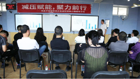 为深入学习贯彻习近平新时代中国特色社会主义思想和党的二十大精神,落实教育部等十七部门联合印发的《全面加强和改进新时代学生心理健康工作专项行动计划(2023—2025 年)》及省教育厅等十八部门联合印发的《四川省全面加强和改进新时代学生心理健康工作实施方案》要求,切实提高辅导员心理健康教育工作水平,提升我校师生心理健康意识和能力,2024年4月28日,我校在致知楼207智慧教室开展了“减压赋能,聚力前行”为主题的辅导员正念减压团体心理辅导沙龙。