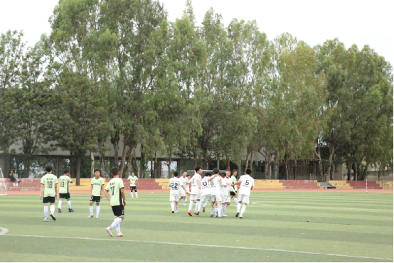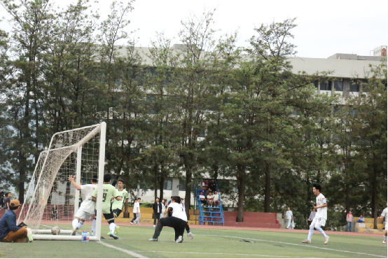 比赛开始,整个球场氛围随着球员们调动。足球场上的每一帧都是力量与美感的完美结合,无论是球员们看到球时灵动的跑动,还是遇到球时精准的传球和射门,每一次球员与球的合作都充分体现了运动的魅力与价值。足球一次又一次的在空中划过一道优美的弧线,随后应声入网,观众席的同学们为之欢呼,球员们也为之尖叫,仿佛整个球场都在为之喝彩。