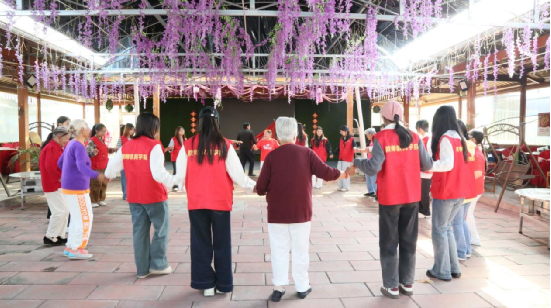 活动伊始,志愿者们带领老人们跳起了轻快的拍拍操,双方在共舞中迅速拉近了距离。随后,老人们也热情地展示了风采,不仅表演了富有民族特色的彝族舞蹈邀请志愿者加入,更用一曲精湛的二胡演奏打动了在场所有人。现场气氛热烈融洽,而老人们的倾情演出,更让教院学子们深刻感悟到:志愿服务并非单方面的给予,而是一场双向的奔赴,一次年轻灵魂与岁月诗篇的动人触碰。