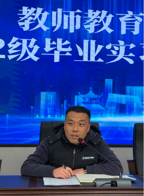 刘院长就2022级毕业集中实习情况进行了总结讲话。他首先对同学们顺利完成实习工作表示了祝贺。他提到,今天很荣幸能够见证同学们的成长与蜕变,同学们的每一次尝试、每一分努力,都凝聚成了这份沉甸甸的实习成果。在接下来的时间里,相信同学们将用生动的案例、真挚的情感,向大家展示实习期间的成果,分享令人难忘的教育故事。最后,刘院长预祝本次实习总结大会取得圆满成功,并祝愿每一位同学在未来的道路上都能够乘风破浪,勇往直前。