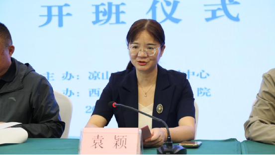 开班仪式于上午8:30准时开始,由凉山州教师发展中心副主任蒋木吉主持。仪式伊始,西昌学院党委常委、副院长袁颖代表承训单位致辞。她在致辞中强调,幼儿教育是奠基工程,教师是核心力量。她指出,本次培训是西昌学院“产教融合年”理念的生动实践,学院将充分发挥高校理论优势与地方实践资源,通过“理论导师+实践导师”双轨制、“校地融合、理实一体”的模式,确保培训实效。袁颖副院长对全体学员提出三点期望:珍惜机会,静心研学;知行合一,勇于实践;严守纪律,树立形象,努力实现“培训一人、带动一园、辐射一片”的倍增效应。