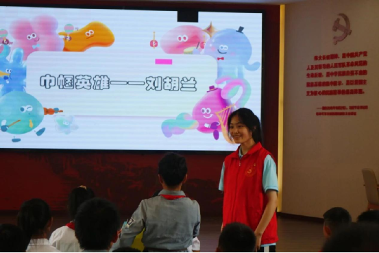 在皎平渡村党群服务中心,队员们向孩子们讲述王二小和刘胡兰的英勇事迹。随着队员们的娓娓道来,孩子们或托腮凝神,或攥紧拳头,被小英雄们无畏牺牲的精神深深打动。通过教育关爱实践,为孩子们搭建起启迪智慧的阶梯与滋养心灵的沃土,帮助他们在知识浸润与精神感召中,成长为心怀家国、勇担使命。