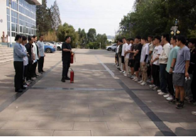 学生安全撤离后,演练工作人员对学生进行整队,并由实验实训室张浩老师为同学们演示灭火器的正确使用方法,同学们认真学习并现场操作,最后由陈晓莉同志作本次演练总结讲话。