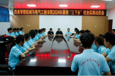 为深入学习贯彻习近平新时代中国特色社会主义思想和党的二十大精神,贯彻落实习近平总书记五四青年节对全国广大青年寄语精神,引导和帮助青年学生在社会课堂中受教育、长才干、作贡献,争做有理想、敢担当、 能吃苦、肯奋斗的新时代好青年,西昌学院机械与电气工程学院暑期“三下乡”社会实践团,组织“彝”路沐恩乡村振兴实践团、青春红丝带小分队、追寻红色足迹小分队等21支小分队前往凉山州喜德县、普格县、宁南县、月华乡、礼州镇等地开展禁毒防艾、教育关爱、民族团结、红色教育、乡村振兴等实践活动。2023年7月9日早上8点,机械与电气工程学院2024年暑期“三下乡”社会实践动员会在7教103会议室举行。机械与电气工程学院党委副书记(主持工作)张谊、院长褚晓锐、党委副书记陈晓莉、分团委书记黄静、学生科科长杨怡以及各实践活动小分队成员参加了本次会议。