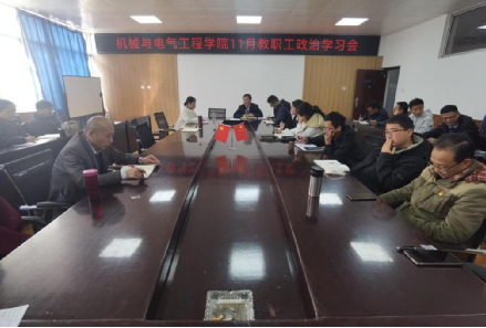 2023年11月30日13:05,机械与电气工程学院在博逸楼7103会议室召开11月教职工政治学习会。会议由党委副书记张谊主持,机械与电气工程学院全体教职工参加了会议。