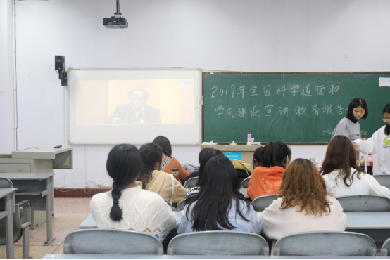 11月13日下午,为贯彻习近平新时代中国特色社会主义思想和习近平总书记关于科学道德和学风建设重要指示精神,落实《关于进一步弘扬科学家精神加强作风和学风建设的意见》,深入推进科学道德和学风建设宣讲教育工作,2019年全国科学道德和学风建设宣讲教育报告会在人民大会堂举行。按照省科协通知要求,我院精心组织全体无课的老师同学在学院9301教室集中收看了直播会,其余有课的老师和同学们自行观看。