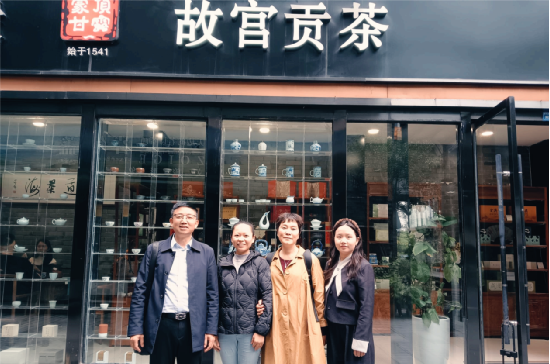 中午,在雅安甘露堂茶业有限公司负责人陪同下参观了成都秋季茶博会,并重点走访了雅安甘露堂茶业公司,与企业相关负责人陈菊总经理开展深度交流。甘露堂依托雅安高山茶核心产区资源,打造了集生态观光、茶文化体验、户外露营于一体的茶旅综合体,其非遗茶文化传承与文旅融合的发展模式,与旅游与城乡规划学院的专业建设高度契合。在茶博会现场,访企拓岗小组的老师们沉浸式感受了茶文化产业发展新趋势,与行业从业者探讨了茶旅融合、研学线路设计等热点话题。座谈中,双方就学生实习实践基地建设、茶文化旅游项目合作、复合型人才联合培养等内容达成初步共识,为拓展文旅专业实践领域、促进茶文化与旅游产业深度融合奠定了基础。