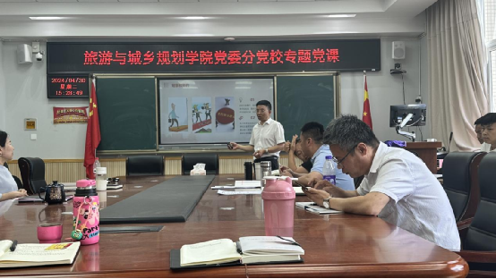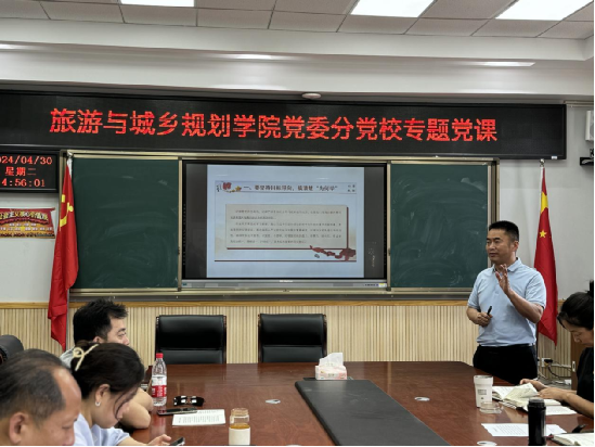 4月30日旅游与城乡规划学院教师党支部在致知楼112室围绕《中国共产党纪律处分条例》的学习开讲专题党课。学院全体教师党员参加了党课听讲,党课由教师党支部书记格坡铁支主持。