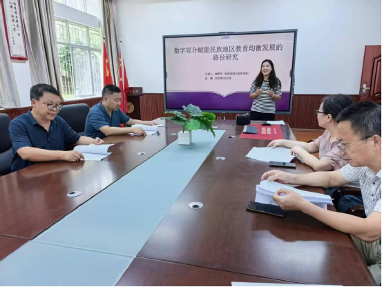 谢明芝老师首先汇报了《数字媒介赋能民族地区教育均衡发展的路径研究》的开题情况。该课题以凉山彝族自治州为案例,构建"数字媒介—教育资源—教师能力—学习者机会"系统模型,探索数字媒介赋能民族地区教育均衡的路径机制。研究采用文献研究、实地调研、案例分析等方法,分三阶段推进,旨在形成本土化数字教育赋能模式。