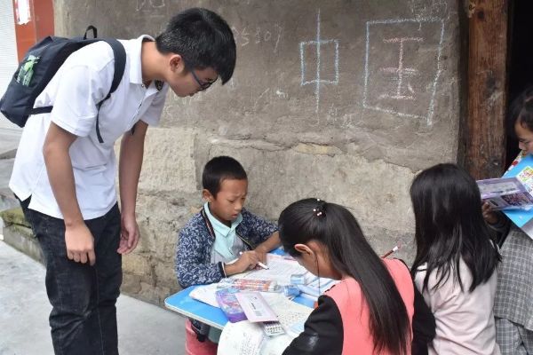 在走村入户过程中,我们来到了几家贫困户的门前,其中有一家的孩子坐在苞谷堆上,土房里光线昏暗,没有电灯,他们就只能借着门外微弱的光围坐在一张小桌子上学习,考虑到对小孩的视力伤害较大,志愿者们帮助他们把小桌子搬到门外,跟他们坐在一起,为他们辅导作业。做完当天的作业后,志愿者们纷纷给小孩子们讲起了自己读书,接受教育的学习生活,给在场的每一个小孩都赠送了笔、橡皮、书本等,志愿者们都在用自己的故事和行动去告诉小孩子们一定要好好读书,立志未来。听说村里有一些孤独的留守老人,为了生活,他们经常独自干着农活。在徐贵芝和谢华英二位老师的带领下,我们来到留守老人家中,帮助他们打扫房屋卫生和饲养家中畜禽。