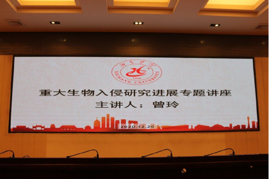 2020年12月20日上午,我院在图书馆报告厅举办“知名专家进校园系列讲座”。特邀国家科技重大专项首席专家、华南农业大学红火蚁研究中心前主任曾玲教授做关于“重大生物入侵研究进展”的专题报告。此次报告会由清源副院长主持,我院2018级农学专业学生参加讲座并进行了交流讨论。