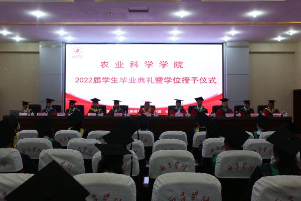 2022年6月22日上午,农业科学学院在至真楼国际学术报告厅举行2022届学生毕业典礼暨学位授予仪式。参加授位仪式的有西昌学院党委书记彭正松教授,农业科学学院党委书记袁颖教授、副院长(主持工作)李静教授、党委副书记涂勇副教授、副院长清源副教授、农业科学学院学位评定分委员会委员郑晓慧教授、何天祥教授、任永波教授、戴红燕教授、张忠教授、林巧教授。授位仪式由袁颖主持。