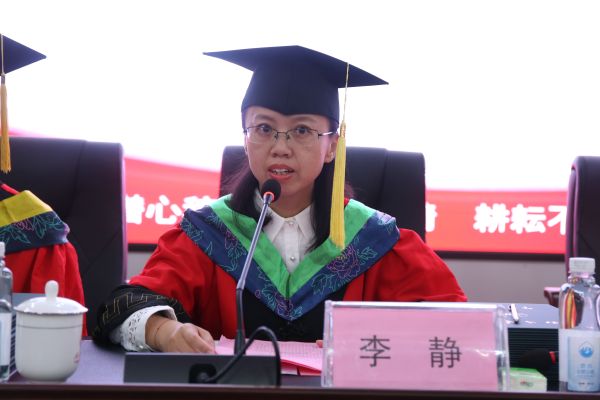 李静在致辞中,向圆满完成学业的388名同学表示了最热烈的祝贺和最美好的祝愿,并提出三点希望:一是要永怀爱国之心,让青春在祖国和人民最需要的地方绽放;二是要树鸿鹄伟志,将个人志向融入时代的潮流,踏踏实实走好每一步;三是要练实干本领,秉承“明德、乐学、求实、至善”的校训精神,努力成为可堪大用、能担重任的栋梁之才。