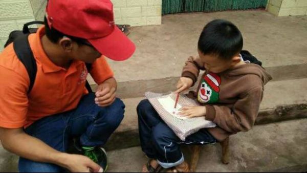 在进行摆点宣传的同时,其他小分队则到各村进行家访。对留守儿童家庭进行访问,了解家庭情况,为留守儿童送去温暖关爱以及为他们辅导功课和作业。