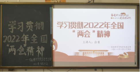 本次党课的主题为学习贯彻2022年全国“两会”精神。本次党课,涂勇同志介绍本次“两会”的会议内容主要分为三部分,并且一一作出阐释,随后,涂勇同志指出了2022年各个方面的发展中心。